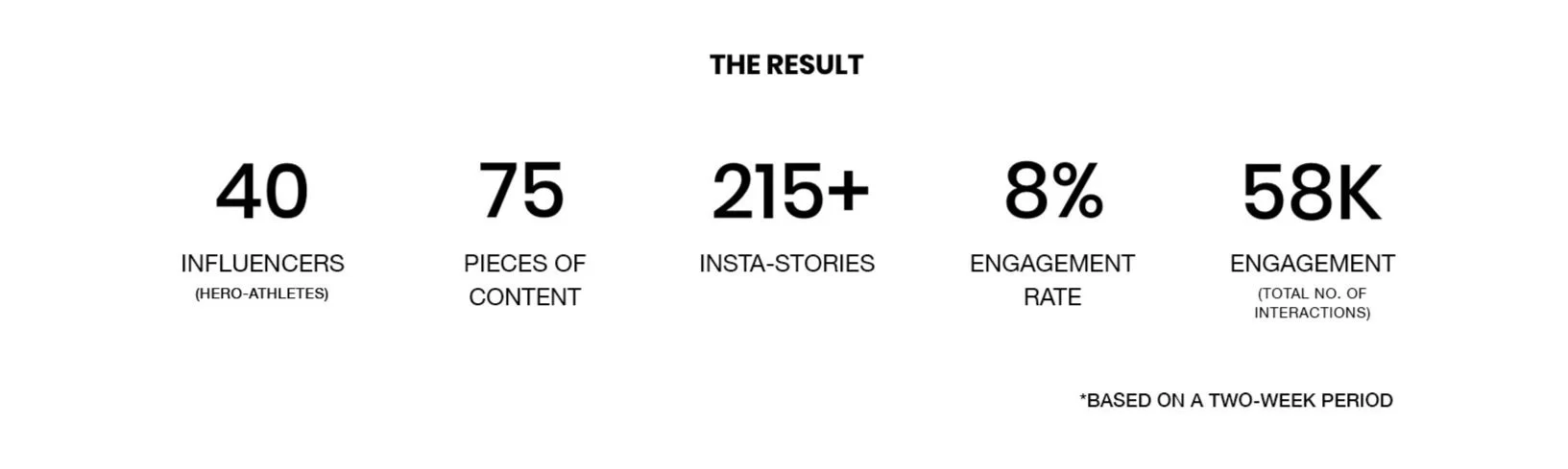 For this project, my sole responsibility focused on INFLUENCER MARKETING & MANAGEMENT. By conducting thorough influencer outreach research, I was able to collect and curate a mix of 20 female and 20 male hero-athletes who